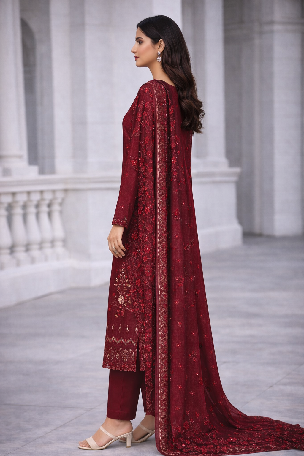 The unstitched format gives you full freedom to tailor the outfit to your exact fit and style—whether you prefer a classic straight cut or a modern silhouette. Paired with a beautifully coordinated dupatta, this 3-piece set is ideal for daily winter wear, family gatherings, and semi-formal occasions.